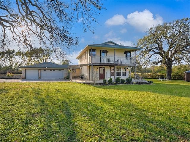 Enjoy blissfully peaceful acreage in fast growing Elgin! Open floor plan, spacious bedrooms, plentiful storage, and guest quarters off the garage with full bath and kitchenette. French doors, a wood burning stove and a home conducive for entertaining combine in a charming rustic setting. Three car garage is an added plus.