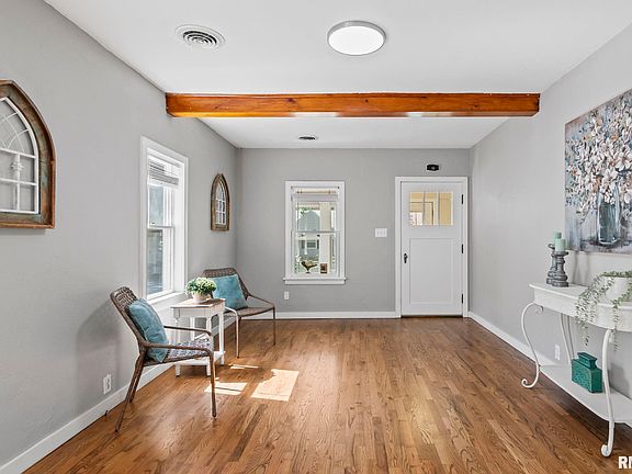 Charming ranch located on a peaceful dead-end road. This home features stunning wood beams, offering a warm inviting atmosphere. With 2 bedrooms, 2 full baths, and hardwood floors throughout the main living areas, it’s move-in-ready. The spacious master bedroom includes a large walk-in closet, private bath, while the unfinished basement offers endless potential for customization. The fenced-in yard provides privacy, and the detached 2-car garage adds convenience with ally access. All this, just minutes away from Washington Park!