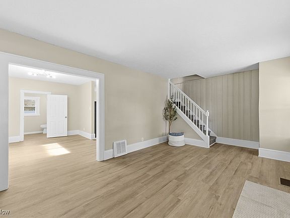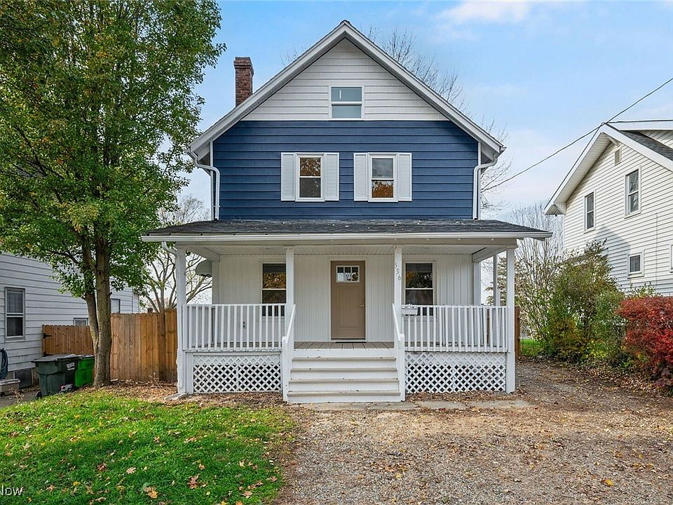This beautifully renovated century home blends classic architecture and modern upgrades. With exceptional craftsmanship, nearly every element has been renewed, creating a move-in ready home with lasting quality. Within the last year, the sellers have replaced the A/C, hot water tank, windows, electrical panel, plumbing, and exterior doors. The furnace is approximately 3 years old, and the roof is approximately 5 years old. All major mechanicals have been replaced or updated, providing peace of mind for years to come. A covered front porch welcomes you into the spacious living room, which features a tastefully painted brick fireplace. The dining room flows into the fully renovated kitchen with butcher block countertops, soft-close cabinets, stainless steel appliances, and a small breakfast nook overlooking the backyard. Both bathrooms have been completely remodeled- the main floor bathroom offers a soaking tub, and the second floor bathroom features a sleek walk-in shower. A convenient second-floor laundry room with gas hookups has been added right off the bathroom. Two bedrooms, one of especially large size, complete the second floor. The newly finished attic serves as the third bedroom. This ample space includes recessed lighting, and a new mini-split heating and cooling system, ensuring complete temperature control. Fresh interior paint brightens the entire home, while the exterior shines with modern siding updates. The backyard is enclosed with a wood privacy fence, offering a secure and private outdoor space. This beautifully updated home is ready for you to move in and enjoy- act quickly!