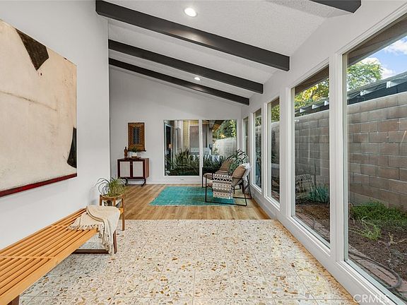 A rare opportunity to own an exceptional, architecturally significant mid-century residence attributed to renowned Long Beach designer Paul Tay, celebrated for his dramatic rooflines, voluminous interiors, organic integration of indoor and outdoor spaces, and meticulous attention to proportion and light. This beautifully updated home captures the spirit of Tay’s most iconic work while offering a refined, modern living experience. A terrazzo-clad entry flows into an expansive living room defined by soaring vaulted ceilings, a sculptural raised-hearth fireplace, and signature floor-to-ceiling glass that frames the lush, private backyard. True to Paul Tay’s residential aesthetic, the home features clean horizontal lines, warm natural materials, and a seamless visual connection between every interior space and the surrounding landscape. The newly remodeled kitchen is a contemporary showpiece, center island, sleek cabinetry, breakfast nook, and effortless flow into an inviting family room with sliders to the covered patio. The adjacent formal dining room is wrapped in natural wood finishes and opens to an intimate side courtyard, a hallmark of Tay’s affinity for protected outdoor vignettes. Two downstairs bedrooms accompany two beautifully remodeled bathrooms, including an oversized downstairs primary, along with a convenient laundry area that can be converted back into a third bedroom if required. Upstairs, the redesigned primary suite feels like a private retreat with vaulted ceilings, an entire wall of closets, a tranquil viewing balcony, and an elegantly redone bathroom featuring a separate soaking tub, walk-in shower, dual closets, and spacious built-in vanities. The home’s wraparound yard is both dramatic and serene, offering mature landscaping, new custom plantings, and multiple areas for dining, lounging, and entertaining. Additional recent improvements include a newer concrete tile roof, fresh interior and exterior paint, and new flooring throughout the first level with plush new carpet upstairs. An oversized two-car garage and sweeping driveway complete the property. Set on an interior tract in the highly coveted Park Estates, this custom Paul Tay residence blends architectural pedigree with thoughtful modern upgrades, creating a one-of-a-kind home for those who appreciate timeless mid-century design elevated for today’s lifestyle.