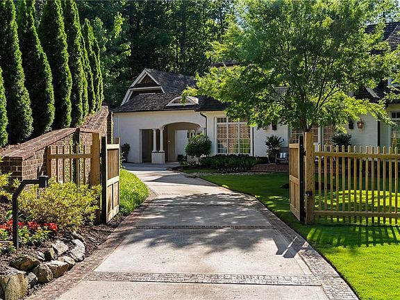 Tucked within an exclusive enclave of just four executive residences, this extraordinary newer construction New England coastal-style home offers a rare architectural departure in Atlanta’s luxury market. This private, gated residence sits 600 feet back off the road on over three wooded acres, surrounded by a canopy of trees that create a peaceful retreat just minutes from Chastain Park and City Springs. Ultimate privacy that makes you feel like you're in the country yet it's in a vibrant urban locale in the heart of Sandy Springs! Designed for effortless living and refined entertaining, the open-concept layout begins with a true chef’s kitchen featuring a premium six-burner Wolf range, double ovens, Sub-Zero refrigeration, dual dishwashers, ice maker, dry bar, two farm sinks, two walk-in pantries, and generous marble countertops. A spacious island anchors the space and opens to the fireside great room, creating a natural gathering place for family and friends. The main-level luxurious primary suite features a custom closet with center island and a private office or sitting room with pocket doors. And a spa-like bath offers a steam shower, soaking tub, and dual vanities. A wall of windows spans the back of the home, bathing the interiors in natural light and framing views of the beautifully landscaped grounds. As Fall arrives, the home’s outdoor living space is ideal for weekend cookouts and gatherings by the wood-burning fireplace under the pavilion. Walk out the main level to the covered patio with outdoor kitchen that overlooks the resort-style heated saltwater pool, spa and gorgeous tree-lined backyard. The finished terrace level is an entertainer’s dream, complete with a full bar, glass-enclosed 1000 bottle wine room, recreation space, home gym, and two private ensuite bedrooms ideal for an au pair or in-law suite. And just in time for football season, there are multiple tv's so you can watch all of your favorite teams at once! Upstairs, three additional ensuite bedrooms surround a central loft, offering privacy and flexibility for family or guests. Thoughtful craftsmanship and premium finishes are found throughout this nearly 10,000+/- sf home: hand-hewn wood beams, pine ceilings, 6-inch hickory hardwood floors, shiplap accents, shake roofing, gas lanterns, and top-tier appliances enhance the home’s timeless aesthetic. A three-car garage includes space above, ideal for conversion to a carriage house or guest suite. The large laundry area with dog wash and two sets of washer/dryers right off the side entry may be one of the best rooms in the house! Tons of storage on all levels. This is more than a home, it's a rare opportunity to embrace the tranquility of coastal-inspired living with spaces designed for connection, celebration, and comfort in one of Atlanta’s most coveted locations. City of Sandy Springs and school zones for Heards Ferry Elementary and Riverwood High School. **This is a Lake Forrest address but is not directly on Lake Forrest Rd. It is off a private drive in the back of the enclave**