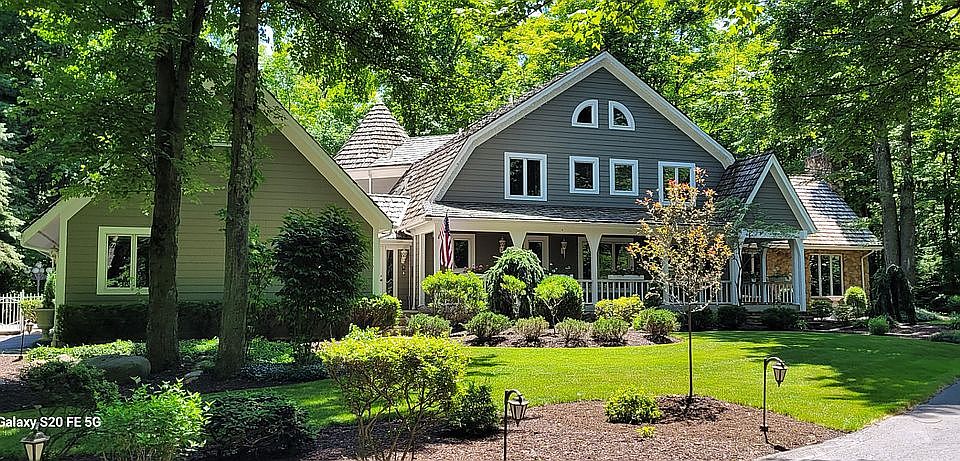 Nestled on 1.24 tranquil wooded acres abutting Cleveland Metroparks this Fazio Custom designed home is your own private retreat. Main floor offers open floor plan perfect for entertaining with beautiful wood floors. Kitchen boasts Thermador gas cooktop centrally located in island. Double Thermador ovens one offers convection cooking. Large Liebherr Fridge and two additional pull out refrigerated drawers. Pull out microwave drawer, granite countertops, counter seating and pantry finish this wonderful kitchen. Dining area with bayed windows. Step down into open great room with vaulted ceilings, stone wood burning fireplace with gas starter. Lovely wood spiral staircase to second level accents this inviting room. First floor primary with wall of windows, gas fireplace and his and hers baths. One with shower and second with jetted tub and bidet. French doors open to deck overlooking serene, wooded setting and babbling creek with waterfall. Main floor also offers private office, laundry room, family room with wall of windows and two half baths. Second floor with additional primary suite and glamour bath with built in sauna, steam shower and soaking tub. Two additional bedrooms and bath. Back staircase and spiral stairs provide access to this level. Finished lower level with bar with stunning lighted countertop and bar seating. Built in wine refrigerators and expansive space for entertainment games. Full bath. Beautiful wooded backyard accented with deck, inground pool with slide surrounded by Nature Stone. Exterior finishes include 3 car garage, Cedar shake roof, shake and stone facade.