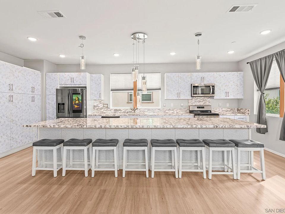 Wonderful value in San Diego! The last model match sold in July at $735,000. With some light cosmetic fixes, create automatic equity- a fresh coat of paint, new carpet and removing the peel and stick contact paper off the cabinets and countertops, you will have a beautiful new home in the Playa del Mar complex! This three story townhome was built in 2019 and features a two car garage with room for storage and like new epoxy floors. The main living space is large and open concept with a huge island, perfect for entertaining. Once you peel off the contact paper, you will find beautiful quartzite counter tops and white cabinets. On the top floor you will find 3 bedrooms, 2 full sized baths and a stacked laundry closet. The best part of this home are the incredible amenities within the gated complex- resort like pool, spa, outdoor showers, great gym space, locker rooms, BBQ area, club houses, play ground, park and so much more! This home is a must see!
