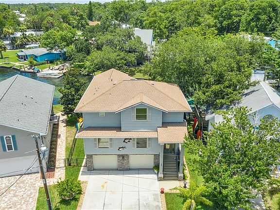 This is what dream homes are made of. Superior construction, custom three story home located directly ON the Weeki Wachee River. Approximately a mile from your dock to the Gulf of Mexico; DIRECT access! Views of the crystal clear river from all common areas, plus the master suite. Aesthetically pleasing details everywhere you look, from the stone work inside and out, to the Brazilian cherry hardwood flooring. A chef's delight with custom hickory cabinets, granite, double ovens, gas stove, and a breakfast bar in the kitchen. Enjoy the views from your family room which features a gas fireplace and floor to ceiling windows overlooking the river. Interior laundry on level two. Third level features built in desk in the office area, master suite, and bedroom two suite. Master suite boasts 3 large custom closets, soaking tub, separate shower, dual sinks plus vanity. Bedroom two features a full ensuite bath plus vanity and large custom walk in closet. Summer kitchen and bar in the large enclosed patio overlooking the river. Multi level decks with shower offer plenty of space for entertaining after a fun day in the sun! Fish cleaning station on the large dock, ready for your fresh catch. Lush landscaping and fencing complete the yard space. Right around the bend is Rogers Park which offers a public boat ramp and beach area. The Weeki Wachee River is approximately 7.4 miles from the headspring at the State Park where the live Mermaid Shows are found, to where the River spills into the Gulf of Mexico. This home is located west of the bridge so no need to navigate under it to get to the Gulf! Plenty of local shops, restaurants, and live entertainment available in this area of the Adventure Coast.
