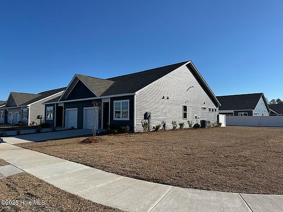 Move in ready villa-style townhome in Leland's Grayson Park community! The Belmont floorplan is like a comfy dream, with three bedrooms, two bathrooms, and a single-level layout that's perfect for entertaining. The primary bedroom is like a secret hideaway, tucked away at the back with a walk-in closet and en-suite bathroom. Enjoy an evening looking at the stars and listening to nature in your backyard that is across from the scenic pond backed by trees that is in walking distance - talk about a peaceful escape! Want comfortable living without the drama? The Belmont's got you covered with allure of Grayson Park, which located in a fast-growing area and surrounded by nature. Grayson Park is a lively yet leisurely community, offering an ideal living environment. Homeowners have access to a range of amenities such as a well-equipped clubhouse, a fitness room, a spacious competition swimming pool, a kiddie pool, a hot tub, a sports court, a playground, and nature inspired walking paths. This home is also ''Connected®!!!!'' Smart Home Technology is included in your new home and comes with an industry-leading suite of smart home products including touchscreen interface, video doorbell, front door light, z-wave thermostat, & door lock all controlled by included Alexa Pop and smartphone app with voice!