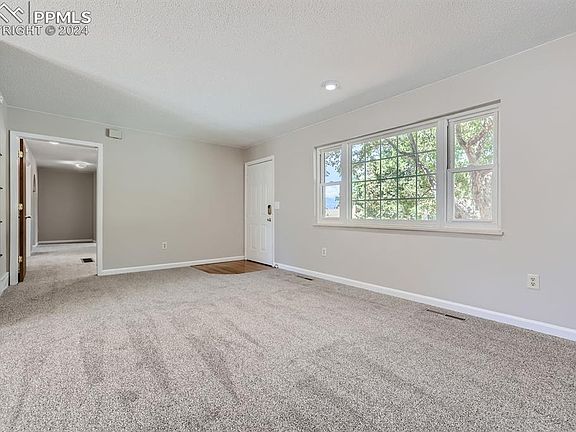 This beautiful home is nestled in the highly sought-after Vista Grande neighborhood, conveniently close to schools and parks. Situated on a lovely lot with mature trees, a fenced in backyard and deck. This 2,142 sqft residence offers both charm and modern updates . Featuring 3 bedrooms and 2 bathrooms, the home boasts brand new paint and carpet throughout. The open-concept main level showcases wood flooring in the kitchen and dining room, complemented by stunning granite countertops. All appliances are less than two years old. The master suite includes a spacious walk-in closet and a versatile office/den area. The lower-level hosts two additional bedrooms and a cozy family room with a gas fireplace, perfect for relaxing and unwinding. Key updates include a furnace that is only 2-3 years old, a new electrical panel installed in 2009, all vinyl, energy efficient windows added in 2010, a roof replaced in 2011, and a newly paved concrete driveway completed in 2023. Enjoy breathtaking Pikes Peak views from the comfort of your home. Accessibility features include a ramp to the main door, wide doors on the main level, and a handicap-accessible shower. The garage, conveniently located just off the dining room, makes unloading groceries and other items a breeze. Don't miss the opportunity to own this exceptional home in Vista Grande!