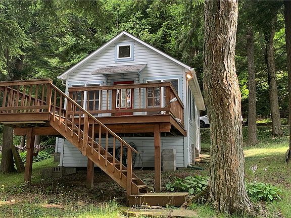 Great things come in small packages!! This charming summer home is the perfect getaway for all your summer waterfront fun! Studio interior means a pull out sofa bed in livingroom is your bdrm. Upstairs loft can also sleep kids. Lots of room to expand. Surrounded by hemlocks, this has a wonderful gently sloping lawn to 60' of waterfront. Bulkhead already set for your dock. Septic has been approved. Turn-key ready!! Enormous deck overlooking the lake ,branches could be trimmed for better view, or keep for more privacy. 10 miles to Hamilton, 15 mi. to Cazenovia. If it's seasonal waterfront living that you desire, you wont find a better price than this cottage! Start your family memories on delightful Bradley Brook Reservoir with crystal clear water. 137 acre lake, beautiful walking trail all around the lake. No personal watercraft on this lake , but motor boats are fine. Call your agent today!!