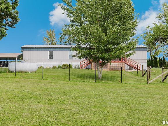 Move-in ready and more affordable than rent! This 3-bedroom, 2-bathroom single wide sits on a beautiful piece of land just outside of town, offering a peaceful country setting with easy access to amenities. The open floor plan connects the living room, kitchen, and dining area, with the laundry conveniently nearby. The split bedroom layout offers privacy, with the primary suite on one end and two additional bedrooms and a full bath on the other. Enjoy mornings on the front porch and evenings on the back deck. The fenced backyard is perfect for pets—just add gates. A carport offers protection from the elements. The septic was pumped and a new motor installed in Jan, 2025.