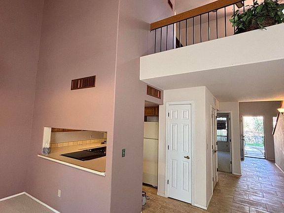 Price Reduced on this adorable, North Foothills, 2 story, 2 Bedroom/ 2 Bath home with 1363 sq. ft with clerestory windows. One bedroom /bath downstairs and Master Bedroom and bath up. Beautiful Tile floors in Front entry, kitchen and bath downstairs. Tiled Wood burning Fireplace. LOFT/ Office balcony overlooking Great Room downstairs and adjacent to Master Bedroom/ master bath. Wood vaulted ceilings in great room and dining area. HVAC believed to be about 8 years old, Hot Water Heater replaced in 2020. Very private back porch with wooded view from adjacent wash. Close to Club house and lots of amenities including tennis courts, 2 pools, lush landscaping provided by HOA. Heavy duty metal security doors front and back. Located near Sabino Canyon Recreation area! Resort like community Flooring allowance possible depending on offer.