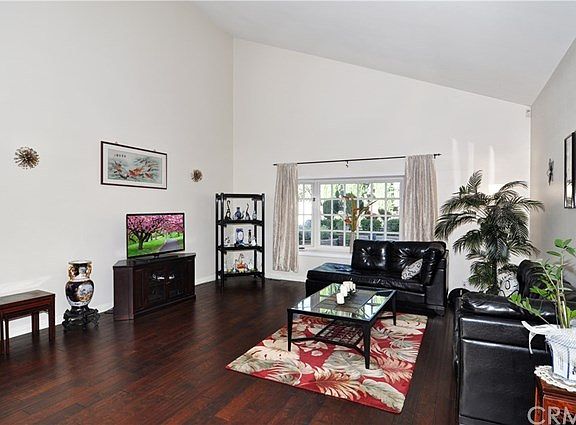Welcome to the community of Westridge! This spacious 4-bed, 3-bath home offers 2,848 SQFT (approx.) of living space and a coveted downstairs bedroom! You enter through a double entry door and are welcomed by the openness & brightness of the inviting Formal Living Room with its high vaulted ceilings. The light & bright Kitchen was tastefully remodeled - cabinets, appliances, granite countertops, recessed lighting and an island with a warm wood top. Adjacent to the Kitchen is the Formal Dining Room. The Family Room is cozy with the fireplace and wooden beams - also has recessed lighting. Downstairs bathroom has recently been renovated. There is new brown hardwood flooring throughout the first level of the home. The double-room master suite upstairs is huge and offers high cathedral ceilings. First room currently has full couch set and TV and second room is used for the bedroom and home office. Master en suite bathroom has an upgraded dual vanity with modern glass sinks; master bathroom also has a walk-in shower. The home has an inside laundry area & a new air conditioning condensing unit. The backyard has recently been seeded with grass that is beginning to sprout and there are Lemon, Persimmon and Longan trees. One of Westridge's most appealing community features is the low HOA of $36/month, which offers an Olympic-sized pool and tennis courts. Welcome Home!