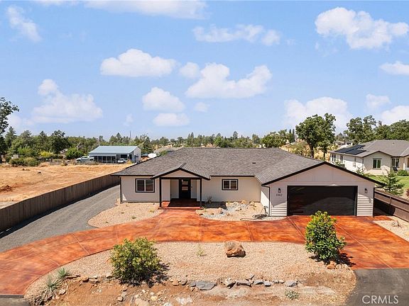 Step into elegance in this beautifully crafted new construction Paradise home! This stunning home offers 3 spacious bedrooms and 2 luxurious bathrooms across 1,863 sq ft of thoughtfully designed living space! Plus, the location lends itself for a short commute to Chico, just 15 minutes away! Step into the elegant entryway and enjoy seeing the expansive great room, where custom beamed high ceilings and a sleek electric fireplace with lighted mantel, create a warm atmosphere. The open-concept layout seamlessly connects the living, dining, and kitchen areas—perfect for entertaining. The chef’s kitchen is a showstopper, featuring an island with breakfast bar with designer cabinetry, pot filler above the gas stove, walk-in pantry, farmhouse sink, stainless steel appliances, quartz countertops, and subway tile backsplash that stretches to the ceiling, accented by floating shelves. Split floor plan allows privacy for your guests with 2 bedrooms and features a guest bath with extra deep bathtub, shower enclosure tiled to the ceiling and glass sliding doors. The Primary Suite is a private retreat with two separate walk-in closets and access sliding doors to the backyard. Spa-inspired bathroom boasts a walk-in shower with dramatic floor-to-ceiling tile and dual vanities. Durable LVP flooring runs throughout the home, while the separate laundry room offers ample cabinetry. A custom bench with coat hooks greets you at the garage entry, adding charm and functionality. The epoxy-coated garage floors and stained circular driveway elevate the exterior, complemented by drought-resistant, defensible-space landscaping in the front yard. The .44-acre lot includes a spacious backyard with covered patio and ample room for RV parking along the side of the home. This home blends elegance, practicality, and modern design in one perfect package! Come home to Paradise!