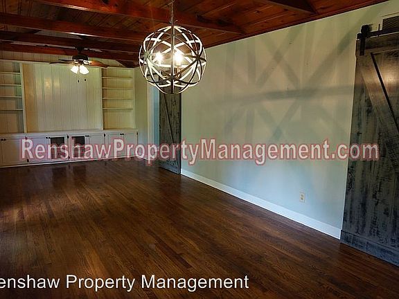 The entry hall leads you to the spacious living room with beautiful hardwood flooring and a fireplace. The living room has two entry ways to the great room and dining area. Great room has lots of built-ins cabinets, hardwood floor, dining area, and slide in doors. The kitchen includes range, microwave, dishwasher, refrigerator, disposal, washer & dryer. The master bedroom includes a private bathroom with a walk-in shower. All other bedrooms are spacious and lots of closet space.