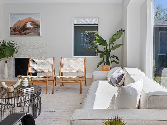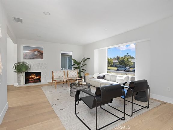 This stylish home, completely reimagined by Maverick Design, is not to be missed! The large living room area is drenched in natural light with an open concept design and engineered white oak flooring throughout, leading seamlessly into the kitchen and dining areas. The kitchen features a combination of white oak and white shaker cabinets, Calacatta quartz countertops, glazed ceramic tile backsplash and high-end, energy efficient appliances. Two large bedrooms are separated by a light and bright bathroom with a stylish blue vanity and a beautiful mosaic tile floor. Make your way into the generous primary suite which features a large bathroom with luxury finishes, freestanding soaking tub, enclosed shower with custom sliding glass door and a double vanity with designer fixtures. The large primary wing of the home continues the designer theme with a modern light fixture and a huge walk-in closet. Out back, the finished garage is great for a yoga studio, home office or another entertaining area and includes a new garage door opener and single lite door leading out to the backyard. The backyard landscaping is the perfect blend of mature trees and modern, drought resistant, design with a new paver seating area while the front yard features xeriscape landscaping—perfect for conserving water. Other upgrades include new HVAC with Nest Smart Thermostat, energy efficient windows, new roof, powder bath, laundry closet, new electrical panel and much more. Come see this gorgeous and completely PERMITTED remodel for yourself. This is the one you have been waiting for!