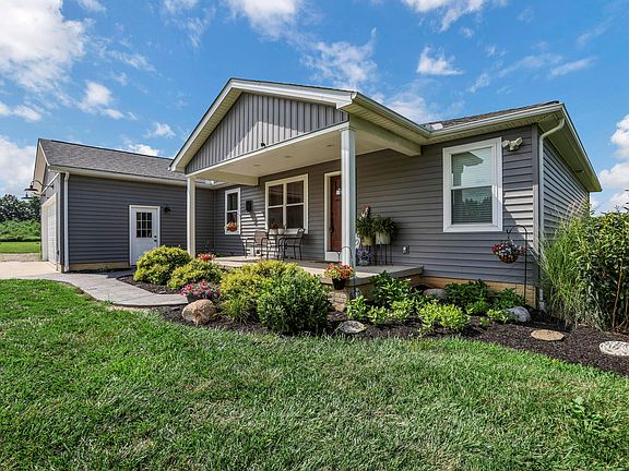 Modern 4BR/2.5BA custom built ranch home on 5 Gorgeous Acres - Over 2,150 Sq Ft Built in 2019, this stunning home offers over 2,150 sq ft of thoughtfully designed living space. Featuring a high-end kitchen with quartz countertops and Amish built cabinetry, bamboo flooring throughout, the interior blends quality finishes with timeless style. Enjoy a walkout basement with rough in plumbing for an additional bathroom, a stamped concrete patio, and a spacious first-floor deck overlooking the peaceful backyard. Situated on 5 scenic acres, this property provides privacy, room to roam, and a perfect balance of indoor comfort and outdoor beauty.