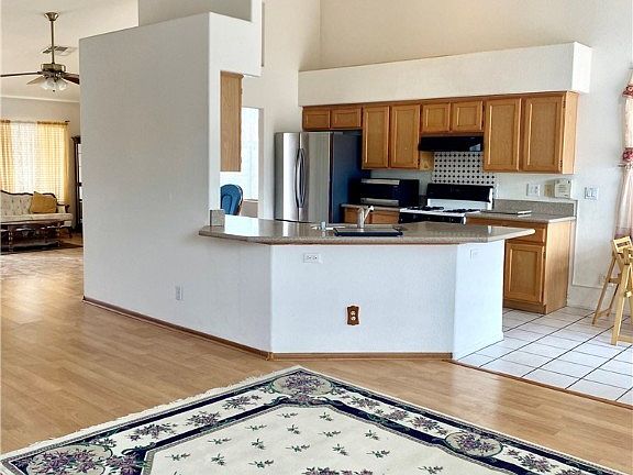 This well-maintained single-story home is located on a corner lot in a cul-de-sac, on a small street with only a few homes. It features RV parking and a sparkling pool. The open floor plan with vaulted ceilings creates a spacious feel. The kitchen boasts granite countertops and opens to the family room. The home includes 4 bedrooms and 2 bathrooms, both equipped with double sinks. The primary bathroom features a garden tub, a separate shower, and his and her closets. No HOA, great location. This is a must-see home!
