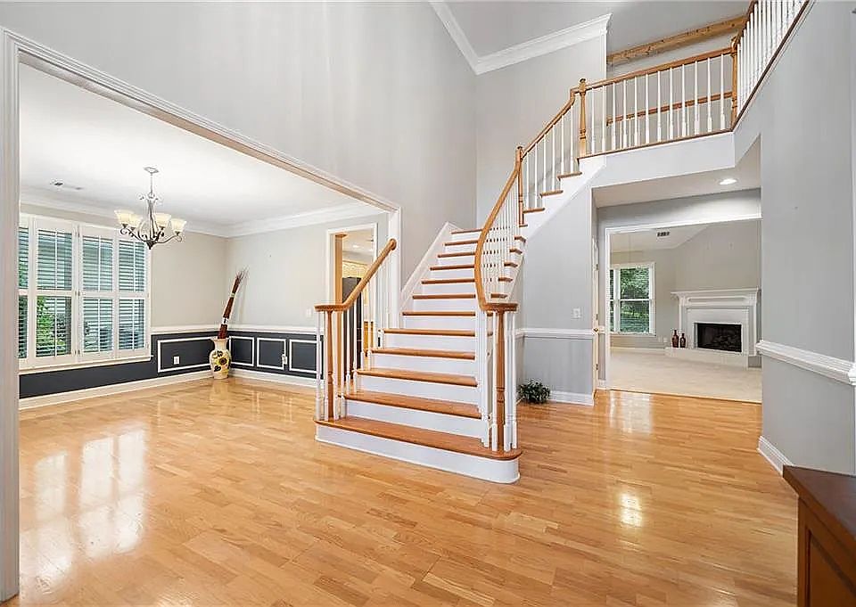 This exceptional home is located in the beautiful Hampton Golf Village, offering luxurious living with a master suite on the main level featuring a cozy fireplace, plus a second master upstairs. The stunning kitchen is outfitted with top-tier appliances and opens to a floor plan that flows beautifully throughout. A fabulous workroom off the garage and office/library with custom built-shelving. Resort-style amenities including tennis, pickleball, pool, fishing pond, playground, and direct access to affordable golf. Minutes from SR400, Lake Lanier, the North Georgia Mountains, and outlet shopping!