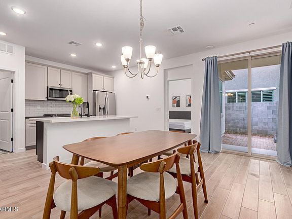 BEAUTIFUL 2 BEDROOM 2.5 BATH TOWNHOME IN VICTORY AT VERRADO! Looking for easy maintenance and resort style living? Look no further! This newer Twin Home built in 2022 boasts a Guest Suite with separate entrance, open concept Kitchen/Great Room, high ceilings, quartz countertops, tile backsplash, stainless steel appliances, plank tile flooring, water softener and R/O system with lifetime warranty, automated shades, Smart Home features, walk-in showers, tankless water heater, and a private, gated courtyard with paver patio. Amazing location in sought-after Verrado, with amenities such as the Victory Club (4 pools, tennis, pickleball, fitness center, spa, restaurant, art studio, etc). Fridge, washer/dryer, & patio umbrella included! Furniture available on a separate bill of sale. Must see!