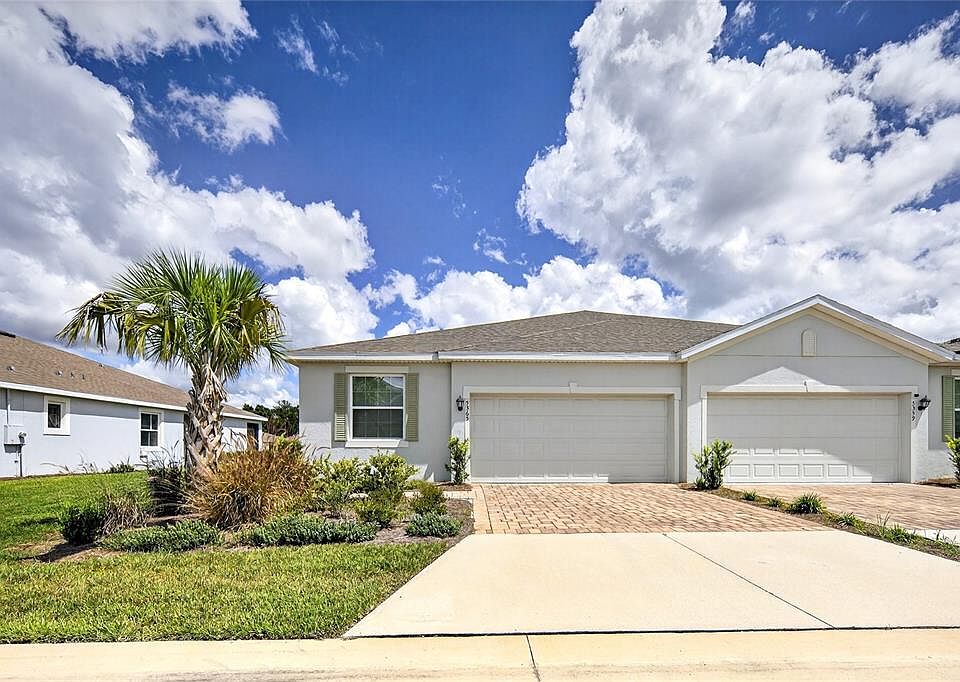 Ocala's Finest Resort-Style Living! Welcome to Ocala Preserve an exclusive, guard and gated community with loads of amenities for those who prefer finer things in life! This Siesta model by DR Horton features maintenance free living (lawn care and exterior maintenance included). Custom paver driveway and sidewalk lead to the end unit with side entry front door, open floor with spacious living room with high ceilings and triple sliding door to screened in lanai., this area leads to primary bedroom with tray ceilings in the far left back of home and primary bath with double vanities, granite countertops and tile surround with solid glass door shower with grab bars and walk in closet. Stepping back across the home you are greeted with dining area and large inviting kitchen with spacious island with room for 4 - 6 bar stools and sink. Granite countertops and stainless steel appliances as well as walk in pantry. The 3rd bedroom/office/den is off of kitchen and would also make a great hobby room with french doors. Heading towards front of home is the laundry closet, 2nd bedroom that shares the 2nd bath with the guests. The garage is a 2 car with garage door opener and is home to the 2023 hot water heater and 2023 Hvac system in ceiling as a space saver, 2023 architectural roof. Enjoy a private oasis with access to Walking/Hiking/Bike Trails, Tennis and Pickleball Courts, Resort Style Pool, On-Site Restaurant, Athletic Center, The Golf Club, Clubhouse, Day Spa and Dog Park. Relax on a kayak and watch the sunrise over our beautiful lake. Unwind at the end of your day with a glass of wine on the expansive Veranda, or enjoy a Chef inspired meal at Salt and Brick restaurant. All very close to the world equestrian center, hits and rainbow springs!