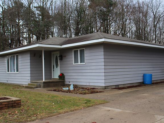 : Pretty 3B/2B ranch home on the outside of town. So many updates, open floor plan, large bedrooms, new paint and flooring.Large Fenced back yard. Garage is dry walled and finished with a rear workshop. Basement is a 3'-4'plus concrete lighted crawl accessed from inside the home, excellent for storage. Large storage shed included. This home is close to schools, hospital, and shopping yet wildlife and mother nature out your back door.