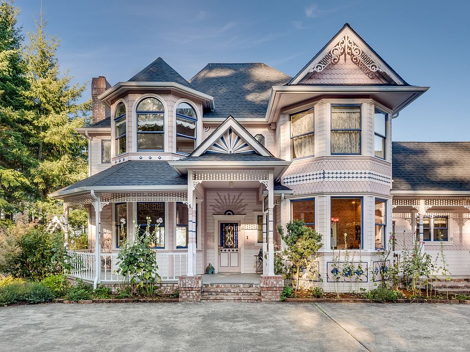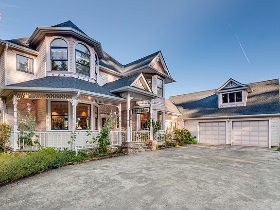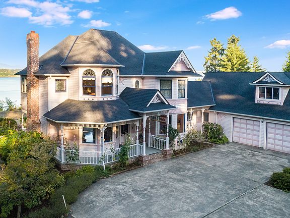 Enjoy the extraordinary views of the Sound & mountains. This charming Victorian-style home was built with extra attention to details: elegant moulding, wood floors, stained/leaded glass windows, antique lighting fixtures, extensive gardens. Large windows flood the house with light all day long. Lots of updates including: new roof & gutters in 2019, heat pump + AC, back-up generator, hot water tank, RV parking. Heated shop built in to the house , perfect for working with hobbies