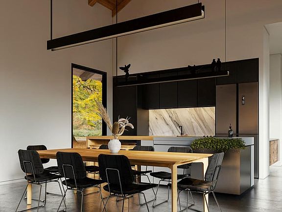 This thoughtfully crafted home design brings together modern comforts and classic craftsmanship. With vaulted ceilings, a striking two-way fireplace, and a wraparound porch, it invites cozy gathering spaces and panoramic views of your hardwood forest.