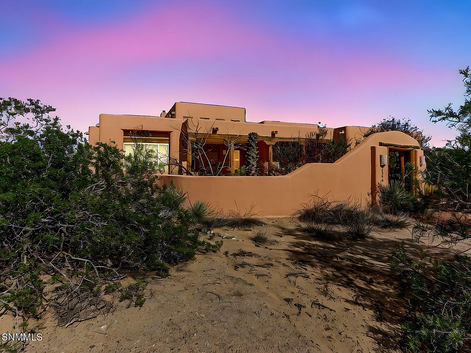 Cozy kiva fireplaceGorgeous kitchenSoaring high ceilingsLarge primary bedroomWalk-in closetClassic wood vigasEast-facing backyard