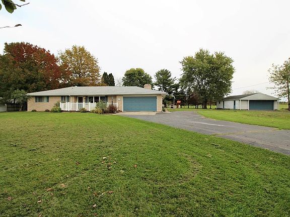 This renovated ranch has over 2,200 square feet of living space and is conveniently located on Huntington's north side. The property is just over an acre and is close to shopping, the YMCA, and Fort Wayne. On the drive up to the property, you'll notice a charming deck and fresh landscaping. Upon entering the home, you'll find the first of the home's many spaces for entertaining. The living room is spacious and has updated flooring. The dining area and kitchen also have the updated flooring and also have new lighting fixtures. The kitchen has plenty of cabinet space, a large refrigerator (which is included in the sale), and a recently installed dishwasher. The family room is another place to relax and entertain and features a fireplace that has stone from floor to ceiling and updated carpeting. The extra room adjacent to the family room has wooden walls and a hot tub (also included in the sale). The hallway to the home's three bedrooms has the first full bathroom. This bathroom has an updated vanity and shower. A trendy pocket door separates the shower and stool from the sink area. The master suite has been completely remodeled. It features a master bath with hardwood floors and double vanity, a large walk-in closet, and a recessed wall for a television/entertainment system. Bedrooms 2 and 3 are down the hall and are also spacious. Outside is where you'll find yet another space to entertain. This patio space is the perfect place to grill out and unwind. While out back, you'll get to enjoy the vast backyard the property has to offer and more recently completed landscaping. The 2nd garage is over 400 square feet, and will provide all the extra storage you could ask for. The home also has a brand new air conditioning unit! GPS may take you in the wrong direction. From 24, go north on 9. Home is on the right.