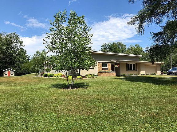 This custom Ness built ranch home consists of 3 bedrooms, 2 baths and very large living room with wood burning fireplace, huge bay window to watch out your gorgeous back yard! High end updates have been done for you! Custom kitchen with Omega cabinets and quartz counter tops with a huge island for additional work area, stainless steel appliances included. 2 car attached with tons of storage and laundry area, & a beautiful 3 piece bath, & a 2 car detached garage located on 13 acres in the city limits for privacy!!! Paver brick patio out back and dog fenced area. New roof in 2019, New furnace in 2018, New carpeting in 2017 and so much more!