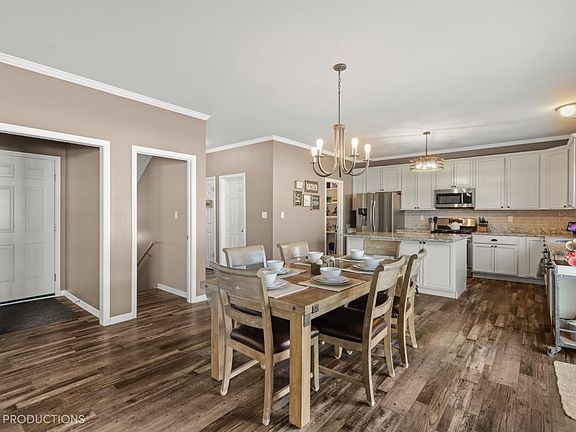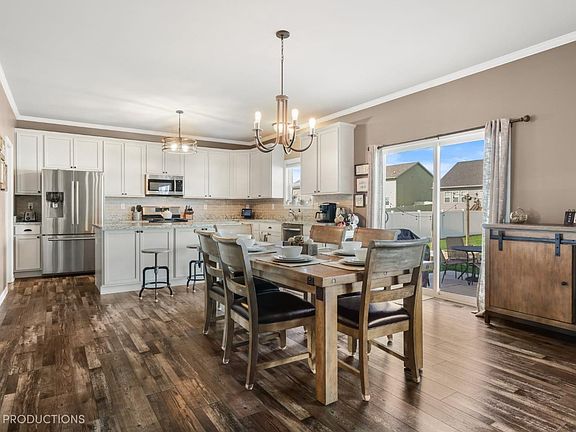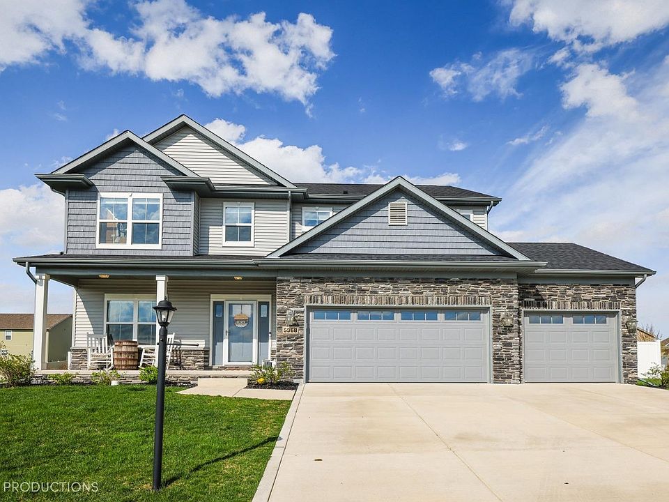 Welcome to this stunning 5 bedroom, 4 bath two story home with finished basement. Boasting over 3610 total sq ft of living space, this home is sure to impress, better than new with a number of upgrades. Main floor features 9' ceilings, crown molding, tile backsplash, upgraded kitchen with 42 inch upper Kemper cabinets, granite countertops, gigantic island, upgraded vinyl plank flooring, walk-in pantry, 1/2 bath, and formal dining room/den. Enjoy the convenience of the Mud Room off the garage. Upstairs, you'll find the oversized master bedroom with barn doors to the on-suit bath (with 5' tiled shower and separate soaking tub) and a walk in closet. The other 3 bedrooms are generous in size, and the laundry room adds even more convenience. The finished basement is complete with a full bathroom, rec room with bar, living room and a 5th bedroom with an egress window and additional storage space. Outside, the beautiful landscaping continues to the backyard, perfect for entertaining.