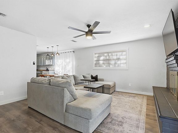 Step inside this beautifully updated ranch style home and enjoy the warm, inviting feel created by its thoughtful design and comfortable layout. The spacious living room sets the tone with luxury vinyl plank flooring, abundant natural light, decorative lighting, and a striking floor to ceiling brick wood burning fireplace that creates a true focal point for the home. It is an ideal space for both everyday relaxation and effortless entertaining.