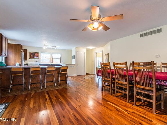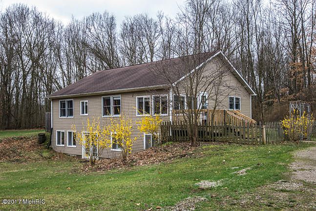 Updated walkout ranch in a beautiful secluded, 5 acre setting. Beautifully finished, with an open floor plan and gorgeous custom details. Gleaming cherry floors, Large kitchen with extensive high-end cabinetry, Master bedroom with en-suite bathroom and a second bedroom & updated full bath on the main floor. Two additional large bedrooms and huge, light-filled family room in the walk-out level. The home sits in an open field, surrounded by woods and trails. . Age is per township records and wal kout square footage is estimated.