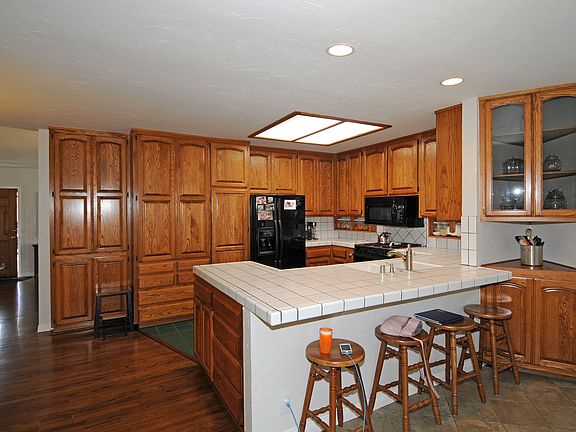- Ceramic Counters, Recessed Lighting, Tile Counters, Built-Ins, Open Floor Plan, Granite Counters