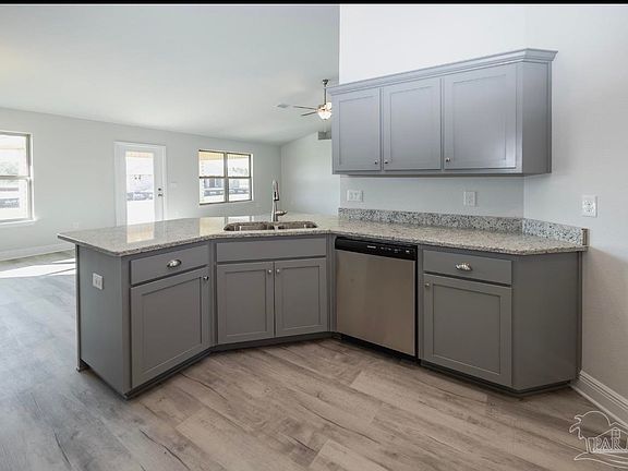 Welcome to this beautifully maintained single-family home offering 1920 square feet of contemporary living space. Featuring 4 bedrooms and 2 bathrooms, this residence boasts high ceilings and luxury vinyl plank flooring throughout, creating an open and inviting atmosphere. The gourmet kitchen is a chef’s delight, equipped with sleek quartz countertops and premium stainless steel appliances, combining style and functionality for your culinary endeavors. Stainless steel appliances are highly sought after by homebuyers for their modern aesthetic and durability. Step outside to the covered patio, perfect for entertaining guests or enjoying quiet evenings outdoors. Located just 30 minutes from the beach, this home offers the perfect blend of comfort and coastal convenience.