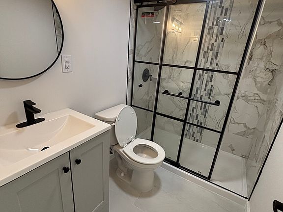 Beautifully updated bathroom with stand-up shower