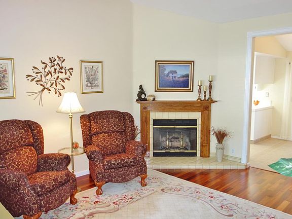 This pristine all one level ''cottage'' is in one of the best locations in the complex! Tucked away at the end of a cul-de-sac it also has a wonderful large private yard and a 2 car attached garage which is the only common wall. Updates in large kitchen, baths, custom fireplace, cathedral ceilings, gorgeous wood floors, tile, some newer windows, newer paint and MUCH more! This one is SPECIAL!