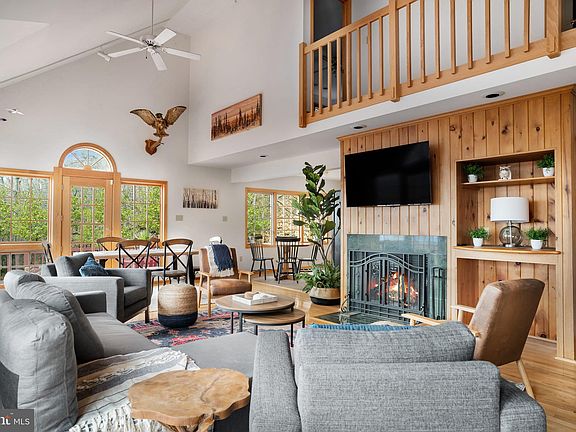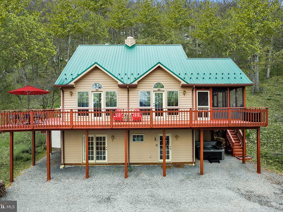 Stunning, newly-renovated five-bedroom chalet cabin with serene mountain views, surrounded by acres of trees, and on one of the most coveted lots in Coolfont. Features high ceilings, huge windows, beautiful woodwork, a wood-burning fireplace, an open kitchen and dining area, wraparound deck, screened-in porch, and bright, airy living space. Professionally designed with all new furniture, modern decor, and hot tub. Seller spent over $70,000 furnishing & upgrading the property. As a vacation rental it has generated $227,000 over the past 3 years ($82,000 last year), and can come with an existing property manager and cleaner. This cabin is located in Coolfont Resort, a private community with an outdoor pool & hot tub, and miles of hiking trails – and just 10 minutes from downtown Berkeley Springs. Hot tub and furniture optional, available for purchase. See seller docs for a summary of rental history and financials. $1,000 buyer credit if you continue using the same property manager. Perfect primary residence or vacation home!
