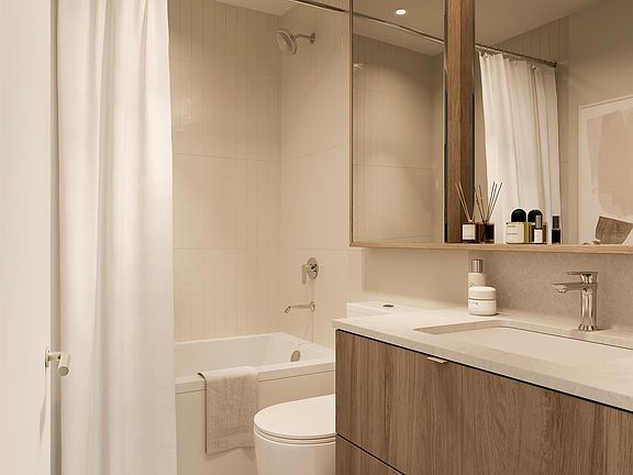 Welcome home to JINJU in West Coquitlam, developed and built by Anthem Properties. Located steps away from the Burquitlam SkyTrain station, JINJU offers unparalleled walkability to shopping amenities, restaurants, cafes, the new YMCA community centre, and Cottonwood Park. Step into your own mountain view hot tub and 28th floor spa with infrared sauna, charcoal cool room, and warm salt meditation room. This West facing 1 bed home offers breathtaking sunsets, city and mountain views. Our layout enhances every inch of space with 9" ceilings, includes a heat pump for ultimate cooling and heating temperature control. The expansive entry and thoughtful kitchen layout allows for great organizational space. Move-in-Ready and open to tour on weekends by appointment