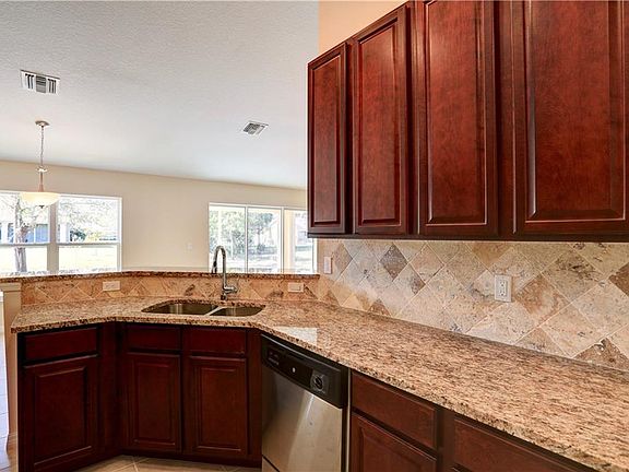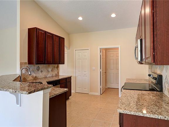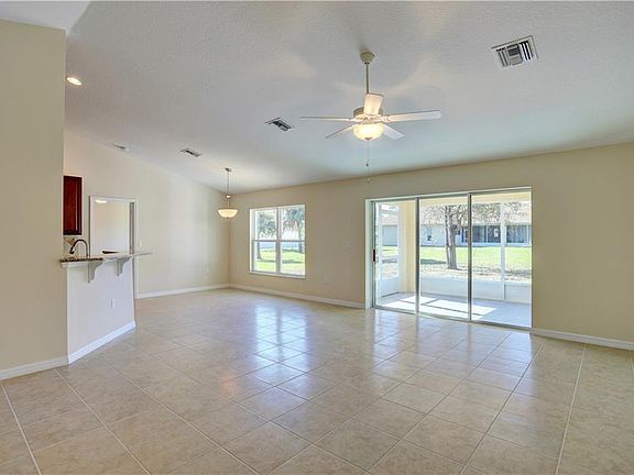 Brand New 4 bedroom home with warranty - July completion. MANY upgrades not included from other builders. Features white raised panel cabinets w/42" uppers in kitchen, GE stainless steel appliances, 18 x 18 ceramic tile floors in main living & dining rm, granite counters & backsplash and large covered 10x16 lanai. Photos of similar home. Colors and options may be different.