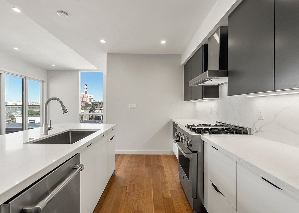 Newly constructed in 2020 this stunning home offers 2 bedrooms plus a den/office, 2 full bathrooms, approx. 1,256 Sq. Ft of open concept living space and soaring 9'+ celings. The kitchen features white quartz counters, sleek two-tone Europeans style cabinets and stainless steel appliances! Off the living room, through two sets of sliding glass doors you will find an expansive covered deck with recessed lighting. The spacious primary suite is complete with multiple large closets and a beautiful spa like en-suite bathroom. The large guest bedroom has a huge custom built out closet and access to the second full bathroom just outside the door. Additional features include in unit washer/dryer, garage parking, elevator and high efficiency Navien On-Demand system. The building is located directly between East and West Broadway so you are just steps to everything the neighborhood has to offer!