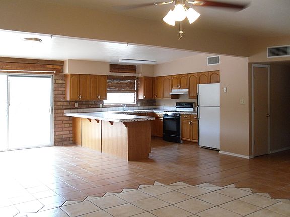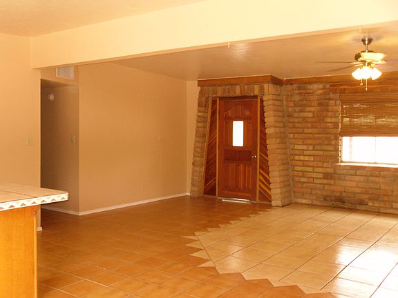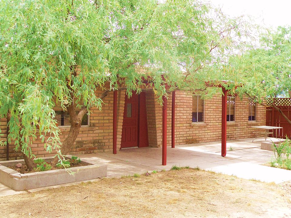 Adobe Home with great room concept, Large Kitchen and dining room and living room with exposed adobe, Tile floors with carpet in master bedroom and 2nd bedroom tile in 3rd bedroom. Huge Fenced yard from and rear. Large storage shed. Nice sized Mesquite trees. easy care yard. One Owner is a licenced real estate broker in the state of Arizona. Call Diane for details 520-850-5681 Application. No Smoking. only well-mannered pet allowed Tenant pays for water use $15.00 per month plus natural gas and electric, Cox cable and internet available.