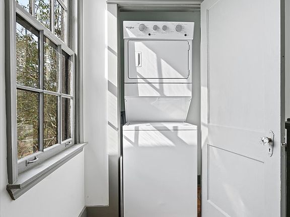 Inside, you'll find an upgraded kitchen boasting stainless steel appliances, sleek granite countertops, and beautifully refinished original hardwood floors throughout. Stay comfortable year-round with new central HV/AC and the convenience of a private washer/dryer. With off-street parking and a cozy 4-unit property layout, this home offers tranquility in the heart of the action.