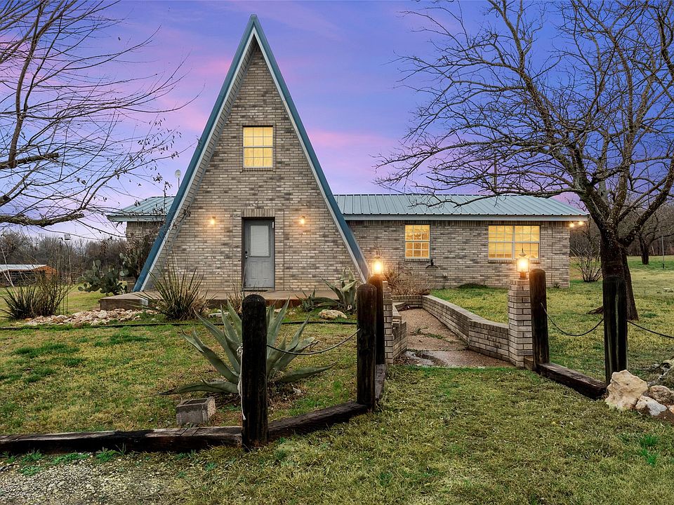 This cute-as-a-button 3-bedroom, 2-bathroom A-frame house is set on 4 acres of fully fenced, picturesque land, providing the perfect blend of privacy and space. Nestled in a secluded area, the property boasts a fully stocked tank, ideal for fishing or simply enjoying the serene waters. Additionally, there are several outbuildings thoughtfully designed for horses and other livestock, making it a perfect retreat for animal lovers. With ample room to roam and explore, this property is an ideal sanctuary for those seeking a peaceful lifestyle surrounded by nature. Situated close to shopping, schools, and restaurants, this home is perfectly priced and has no city taxes. Call your favorite Realtor today to schedule a showing.