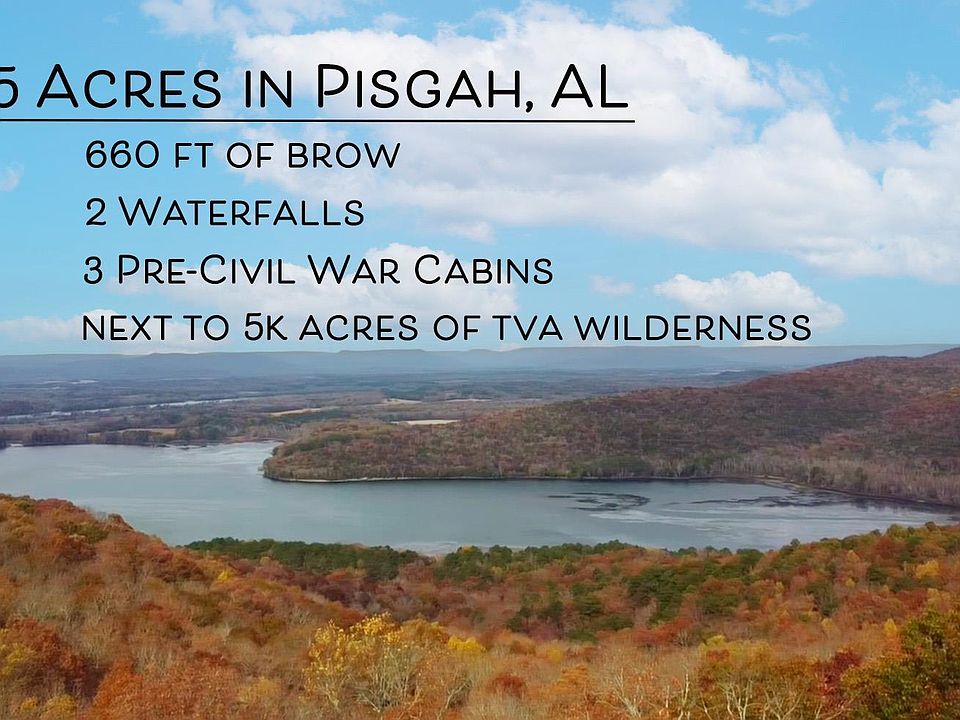 9.63 partially wooded acres that includes 3 pre-Civil War cabins, and 660 feet of brow (needs clearing for complete unobstructed view). Ample cleared land for you to build the home of your dreams with an amazing view! Elevation approximately 1,500 feet. Property features Parton Branch Creek, 2 waterfalls and stunning unpolluted long views of Tennessee River and Cumberland Plateau. Adjacent to more than 5,000 acres of TVA wilderness. Bouldered creek runs seasonally. Water and electricity hookup available from Lazy J Lane. 20-minute drive to Scottsboro. 30-minute drive to Goosepond Colony Marina on Lake Guntersville. See media links for videos.