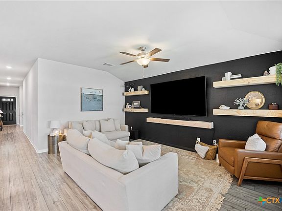 This thoughtfully designed Meritage-built home combines quality craftsmanship with custom upgrades that add charm, character, and everyday livability. Step inside to find stylish lighting, and a bright, open layout that effortlessly connects the living, dining, and kitchen spaces—perfect for gatherings and entertaining. The chef-inspired kitchen showcases upgraded shaker-style cabinetry, polished quartz countertops, a walk-in pantry, stainless steel gas range, and an oversized island that doubles as a breakfast bar and prep space. The private primary suite at the rear of the home feels like a retreat, featuring a bay-window sitting area, spa-style bath with frameless glass shower, dual vanities, and an expansive walk-in closet. Three additional bedrooms offer flexibility for guests, a home office, or multigenerational living. Enjoy peace of mind and lower utility costs with Meritage’s renowned energy-smart construction, including spray-foam insulation, tankless water heater, Low-E windows, smart thermostat, and an in-wall pest control system. Outside, relax under the covered back patio overlooking a fully fenced yard with full sprinkler system—ready for pets, playtime, or outdoor dining.