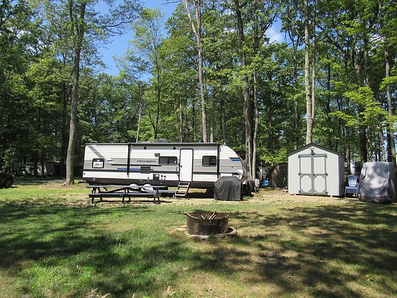 Escape to your own retreat with this Like-new 2023 Heartland Pioneer camper, situated on a corner lot tucked in the woods of Cayman Campground. The serene natural setting will provide a comfortable place to get a way. Relax with family and friends around the firepit, the picnic tables come with it as well. There is a Shed Included to store you toys Sleeps up to 8 and is 35ft in length. Plenty of yard space so bring your corn hole boards and other yard games. Cayman landing offers a pool, lodge, pavilion, ice cream store and playground area. As a property owner, you are privy to all the amenities the Treasure Lake community offers. This includes 2 well-manicured 18 hole USGA rated golf courses, a driving range, 2 inspiring lakes with boating, fishing and swimming, 2 swimming pools, sandy beaches, pickle ball and tennis courts. Breathe Deep and learn to relax at Treasure Lake. The best kept secret in Pa.