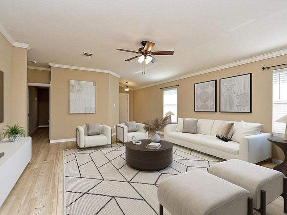 Beautifully updated single-story home featuring three bedrooms and no carpet throughout. Durable hard-surface flooring extends across the entire home, and all bedrooms are generously sized with walk-in closets. The kitchen offers granite countertops, an island, a breakfast area, and comes fully equipped with all appliances including a refrigerator. Just off the kitchen is a convenient laundry room with extra storage, plus a washer and dryer included. The primary suite features a spacious walk-in closet, dual vanities, and a relaxing garden tub. Additional features include a fenced backyard, covered patio, storage shed, and a two-car attached garage with opener. Located in close proximity to abundant shopping, a Super H-E-B, restaurants, and provides easy access to 183A. $100 Admin fee collected with application fee online (with 1st application). "RESIDENT BENEFIT PACKAGE" (included & see 2nd photo for details) *ZERO PET DEPOSIT + PET APPS $30 (additional fees may apply if using a credit card) + Pet Fee monthly depending on FIDO Score (see attachment for FIDO levels).