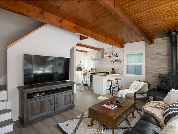 Nestled within the coveted community of Sugarloaf in the Big Bear Area, 537 Maple Lane presents an irresistible opportunity. This meticulously REMODELED three-bedroom, one-bath home epitomizes modern comfort and style, offering a seamless blend of sophistication and functionality. Upon arrival, the eye-catching modern exterior paint scheme sets the tone for the exquisite transformations within. Step onto the inviting front yard patio, where moments of relaxation await amidst the serene surroundings. Enter this custom turn-key cabin and be greeted by the expansive living area adorned with pristine luxury vinyl flooring, setting a tone of contemporary elegance. The newly installed double-pane windows bathe the space in natural light, accentuating the allure of the beamed ceilings. Prepare to be captivated by the heart of the home—the kitchen. A vision of refinement, it boasts white shake cabinets, complemented by butcher block countertops and high-end stainless steel appliances. Bright recessed lighting adds a touch of sophistication, creating an ambiance conducive to culinary creativity. Discover unparalleled charm in the bedrooms and bathroom, where elegant cabin features and vaulted ceilings elevate the living experience. The attention to detail throughout this home is truly remarkable, showcasing a harmonious blend of style and functionality. Additional features include a cozy fireplace in the living area, electric wall heaters, a split unit AC for climate control, an electric car charger, and a tankless water heater, ensuring convenience and comfort for everyday living. Step outside to the backyard patio area, where a rejuvenating HOT TUB awaits, perfect for entertaining guests or unwinding after a day of adventure. With its Short Term Rental potential, this space beckons both relaxation and opportunity. Ideally located just minutes from schools, shopping, restaurants, ski slopes, and the pristine waters of Big Bear Lake, 537 Maple Lane offers a lifestyle of unparalleled convenience and leisure. Don't miss out on the opportunity to call this remarkable property your own in one of Big Bear's most sought-after communities.