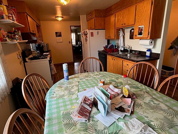 Cozy Ranch Style home with 3 bedrooms, 2 bathrooms, one car detached garage, large chain linked fenced yard. Cover deck for evening visits. RV parking, alley access. New flooring, metal roof, water heater, wood/vinyl casement windows and storage shed.