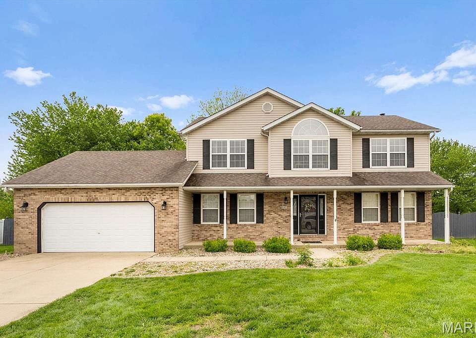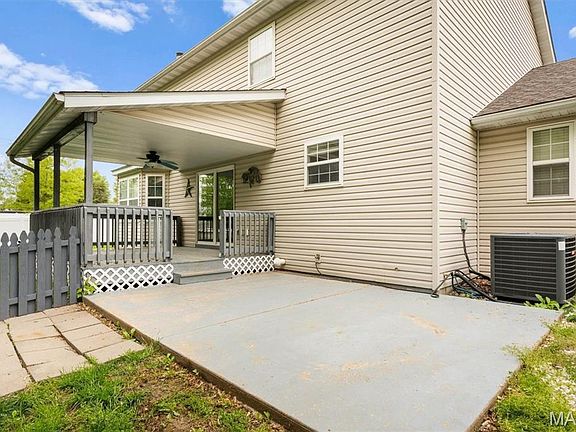 Beautiful, modern home situated on a large cul de sac lot in established neighborhood w/mature trees. Classic open concept 2 story floor plan w/home office option & formal dining room. Large kitchen island, white cabinets and subway backsplash, nuetral countertops & stainless appliances. Eat-in area opens to the large family room w/cozy fireplace and bright windows for natural light. Main level laundry and washer and dryer stay! Covered deck overlooks the oversized lot with mature trees & privacy fence. On 2nd floor, stately master suite w/private bath, separate shower, double vanities, large jetted tub and walk in closet. 3 additional rooms are generous in size w/plenty of storage. All bathrooms have been updated since home was built and accentuate the modern vibe of the home. Finished basement has recreation room, plenty of storage or room for a gym! Just minutes from Scott AFB, I-64, the Sports Park, Goshen Trail, shopping & restaurants.