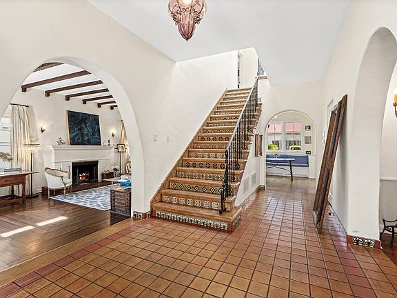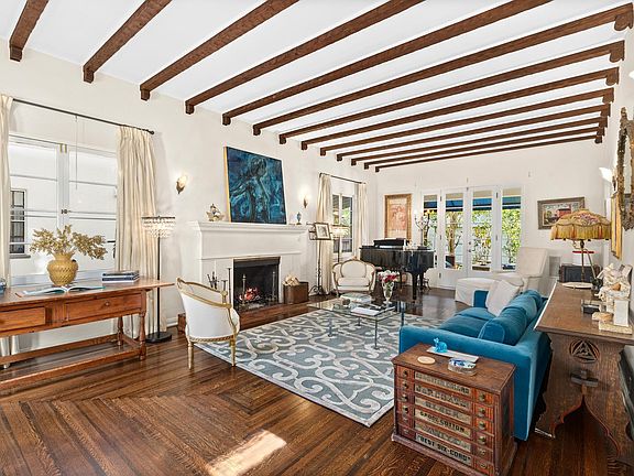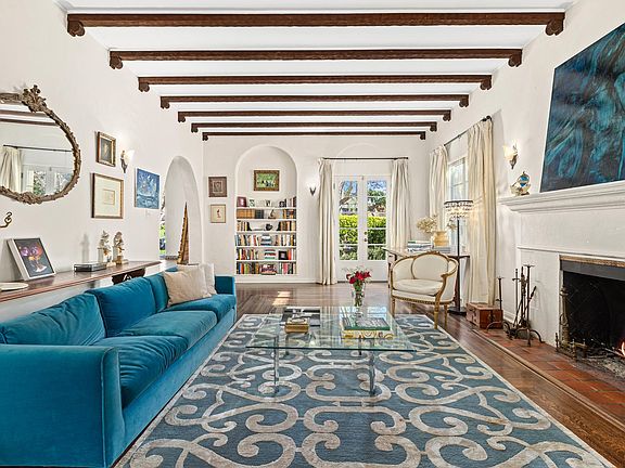 This exquisitely restored Spanish residence sits on a prime tree-lined street in Hancock Park, blending timeless 1920s architecture with refined modern touches. The home offers four bedrooms and three bathrooms in the main house spanning over approximately 3,500 square feet. Inside, classic details abound, from arched passageways and richly hued hardwood floors to exposed wood beams and handcrafted tilework along the grand staircase. A gracious living room centers around a fireplace framed by original casement windows, while the chef's kitchen opens to a sunlit family room for effortless flow. French doors lead to a private, lushly landscaped patio, a peaceful retreat perfect for relaxing or entertaining.
